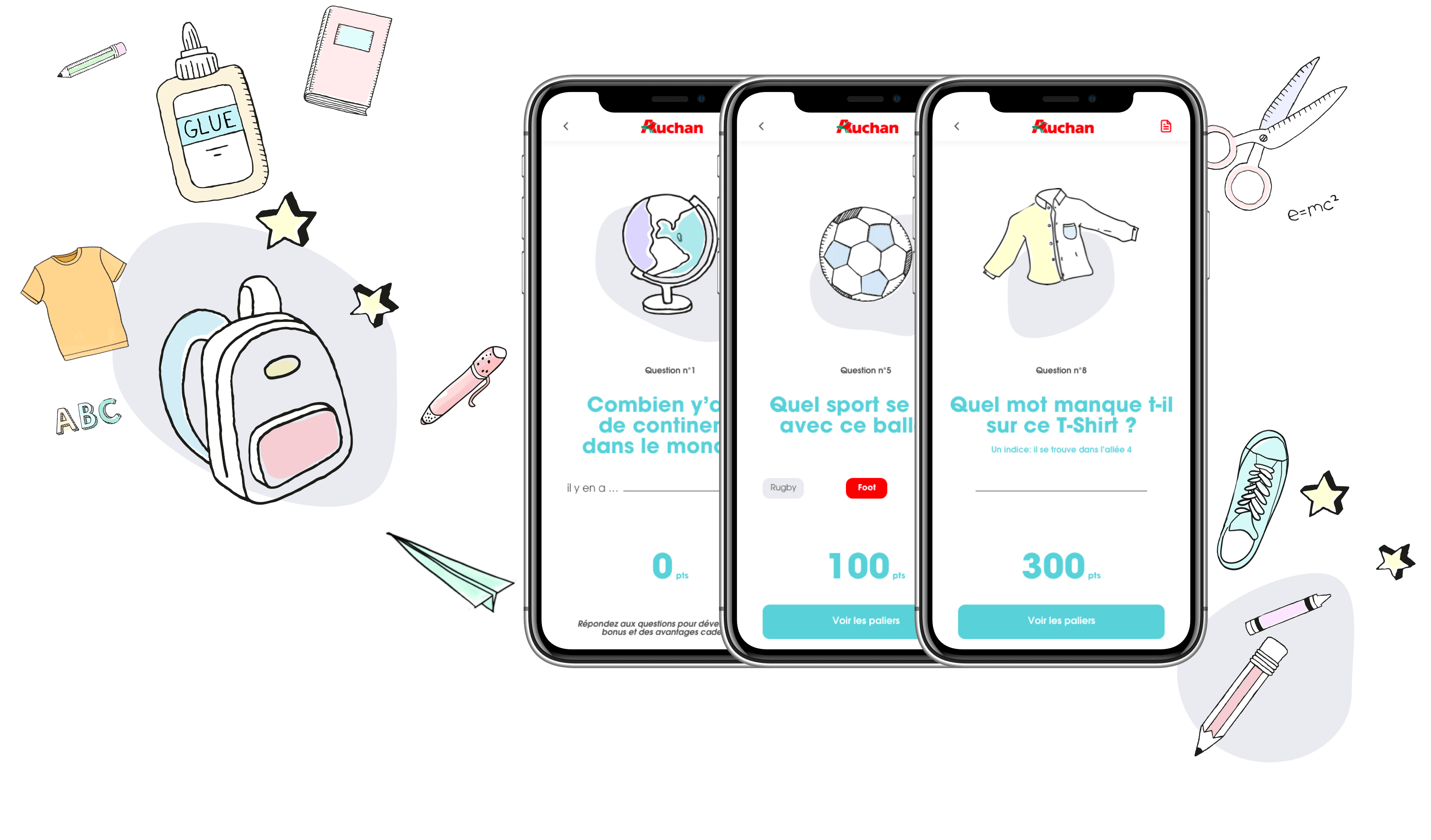 Pour cette solution nous avons voulu proposer quelque chose de doux, d'illustratif aux couleurs & à l’univers Auchan.