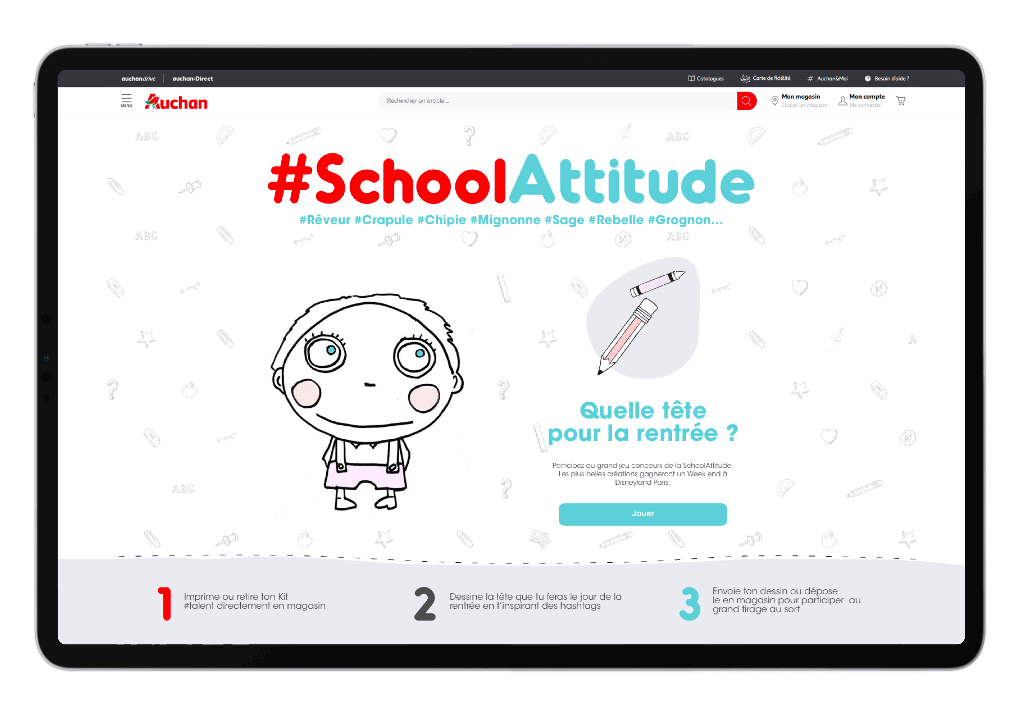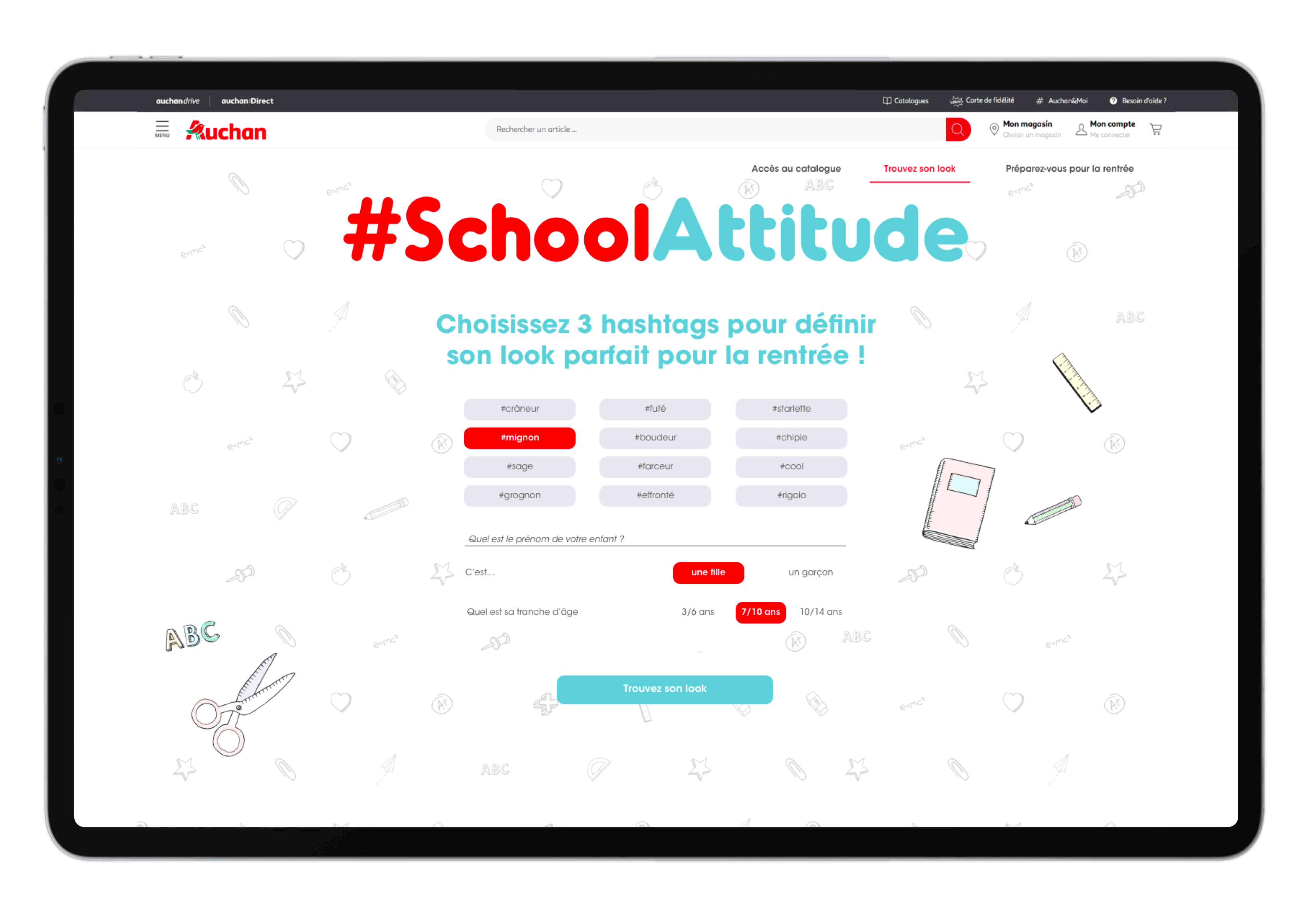Pour transformer les « obligations » de la rentrée en moments ludiques, l’Opé #SCHOOLATTITUDE a été, selon nous, la solution : un dispositif pour capter la personnalité des enfants et leur proposer des planches looks sur-mesure. Une proposition multi-canal facile à exporter qui permet un gain de temps pour les parents et un moment récréatif et amusant pour les enfants.