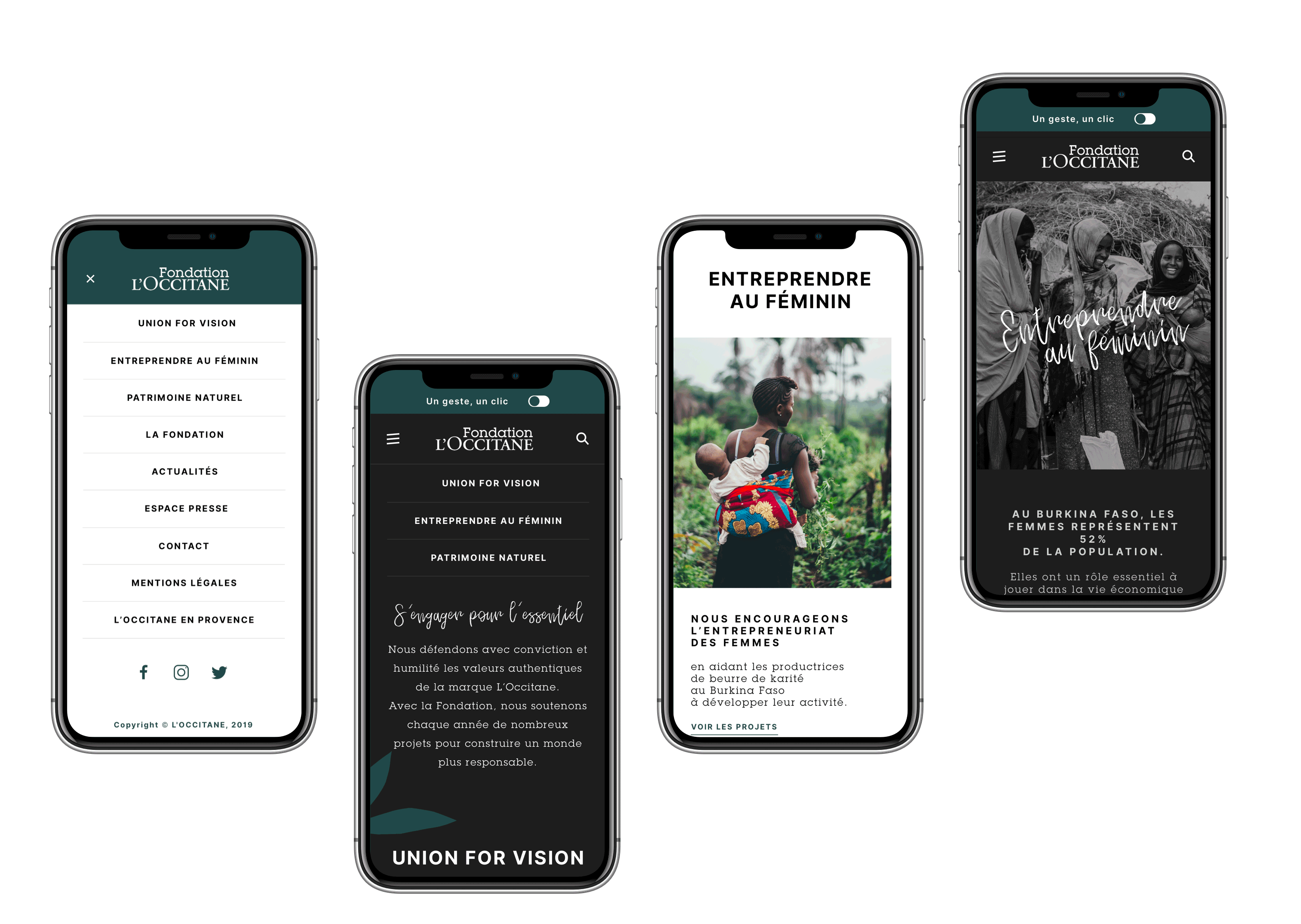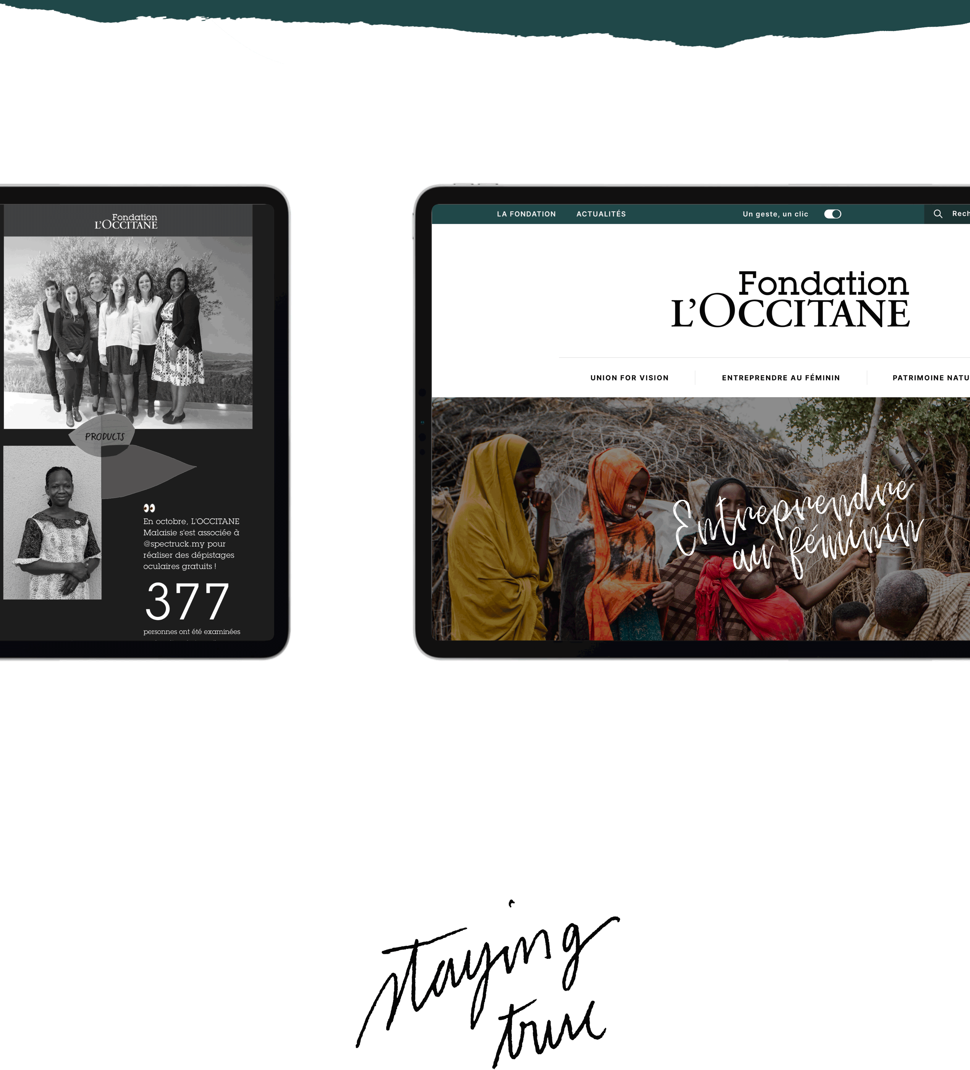 Pour cet univers qui soutient et encourage plusieurs causes – rattaché au groupe l’occitane nous devions ramifier l’identité graphique à celle de la marque provençale. Pour se faire, nous avons produit, composé et décomposé des éléments pour amener de la matière mais surtout du caractère. A travers des touches de couleurs, des formes graphiques, des patterns, des portraits … Nous voulions transmettre cette ADN qui traverse les frontières et œuvre pour une vie meilleure.