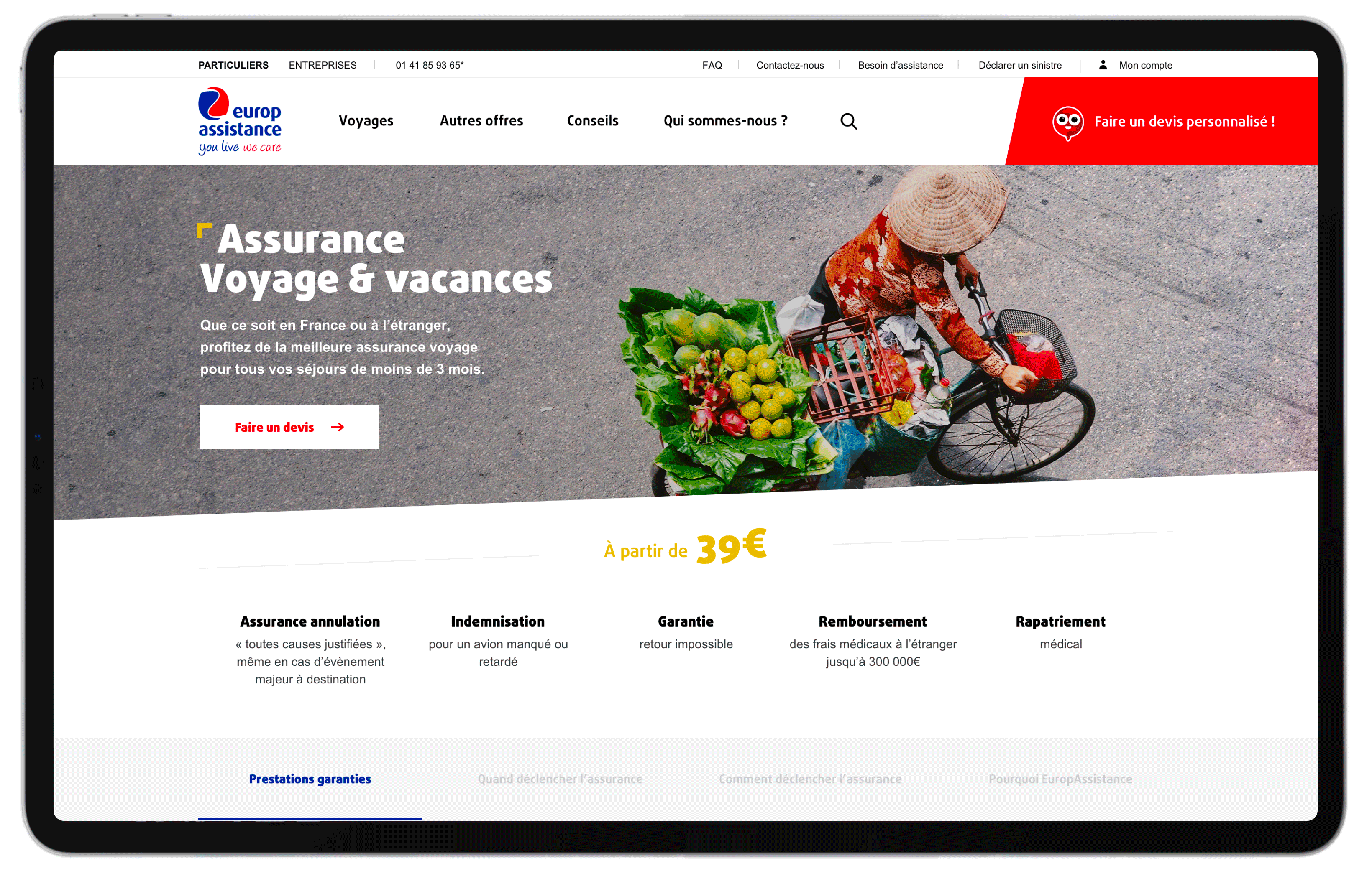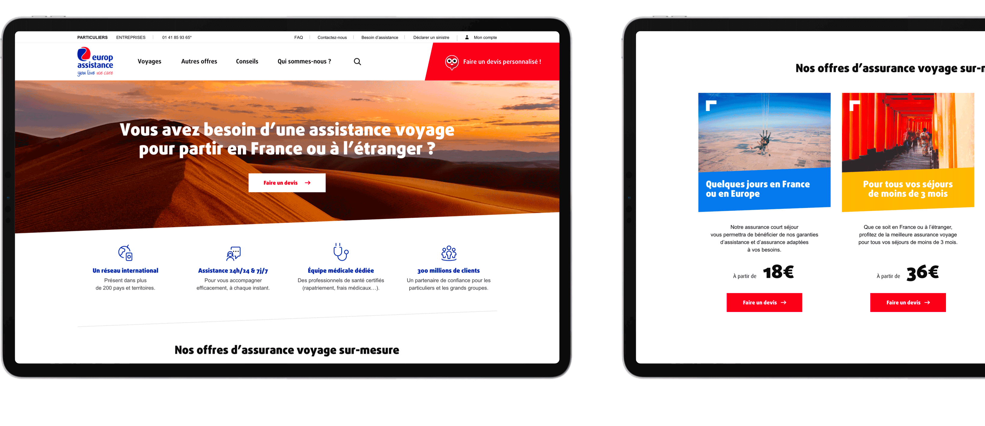 Afin d’inscrire EuropAssistance dans un univers plus actuel, la refonte de leur site B2C était une étape primordiale. L’idée était de dynamiser l’image de marque via une nouvelle identité visuelle et la création d’un nouveau parcours client plus « User Friendly ».