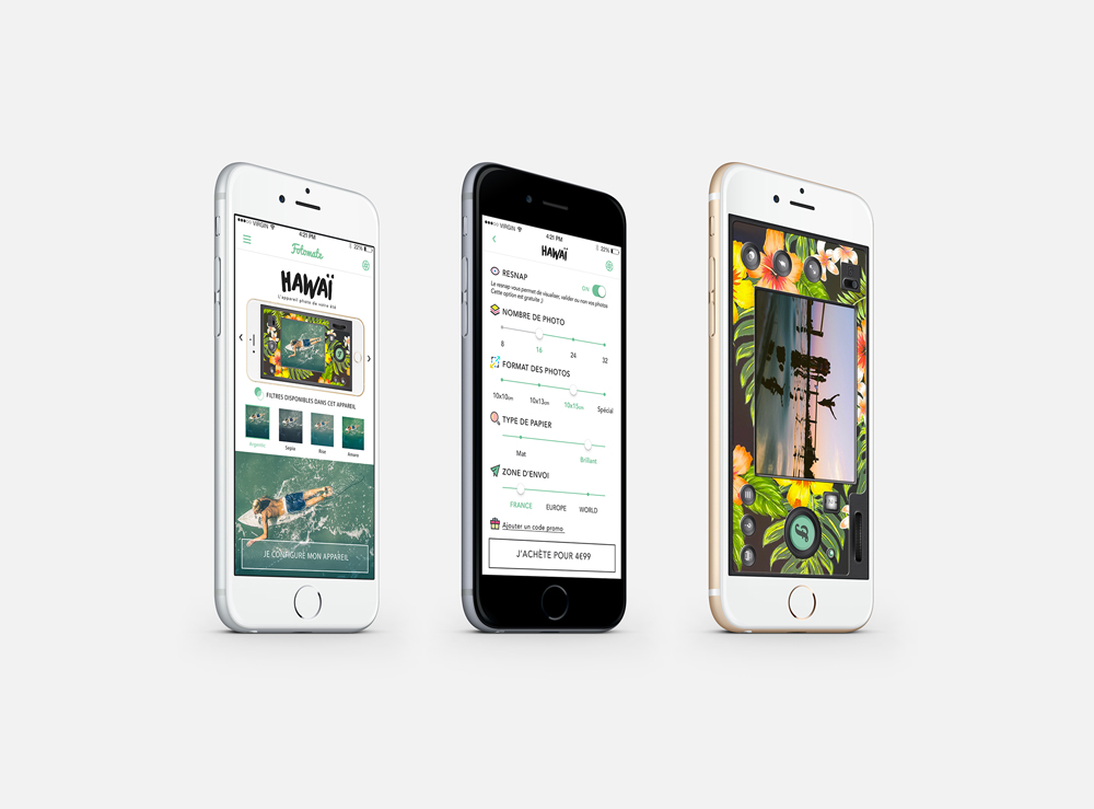 Fotomate est une application ludique et pratique qui permet de prendre des photos à l’instar d’un appareil photo jetable. Pellicule, molette, flash, tout y est, avec la technologie en plus ! Le principe est simple : visez, shootez et recevez vos photos 7 jours plus tard. Fotomate fait plus qu’imprimer des photos, il imprime des moments de vie. L’application remet au goût du jour un rituel empreint d’émotions : la prise de photos sur le vif puis la découverte à domicile des clichés développés.